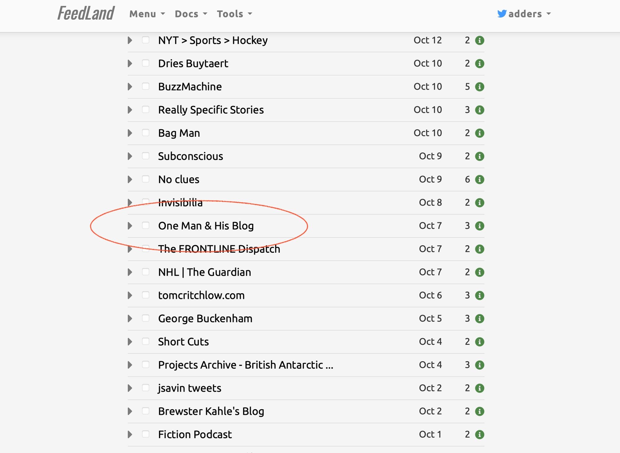 One thing did catch my eye, though, is that Dave is sharing his own feed reading using the service: