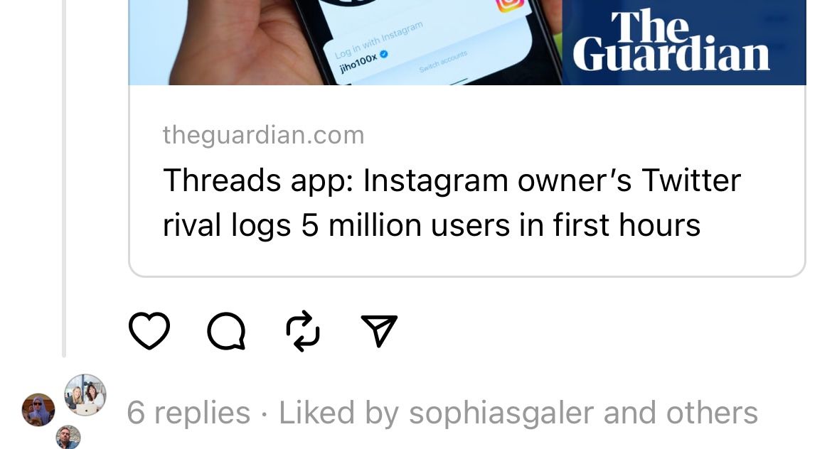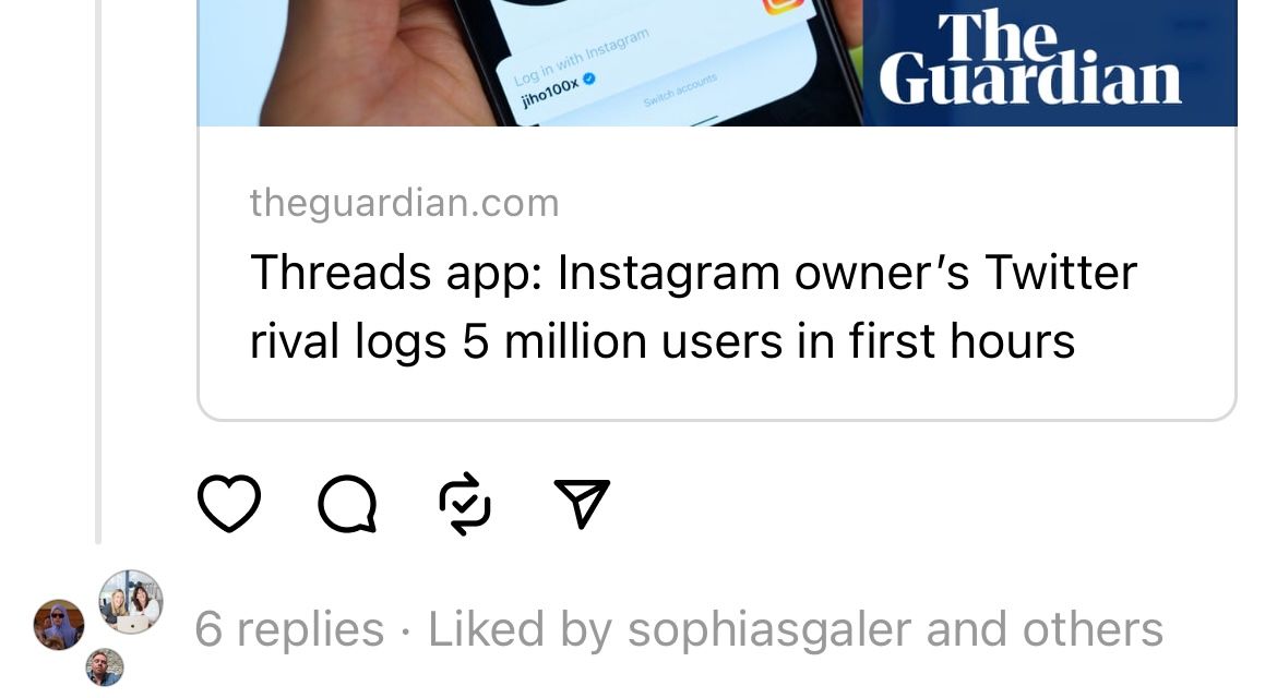 But if they’re serious about winning a mainstream audience, and they look to be, then any publisher looking to win a mainstream audience has to pay attention to Threads. I don’t think it’s good for Meta to own as much of the public discourse as it already does, and the thought of that ownership expanding is depressing.
